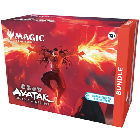 The Avatar: The Last Airbender Bundle comes with nine Play Booster Packs, an Alt-Art Foil Card, 30 Land Cards, and various accessories, including a card storage box.